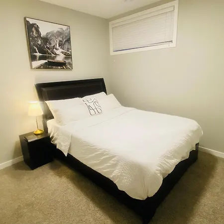 Newly Built 2 Bedroom Basement Apartment offers self-catering options such as an electric kettle, a refrigerator, and kitchenware for guests to enjoy. The nearest Calgary International airport is 15 km from the apartment.